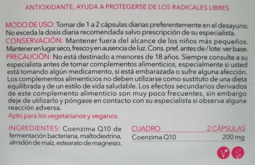 Bueno, ¡a ver!, no es que haga milagros ni mucho menos, pero si que ya voy apreciando sus resultados y efectos. E incluso, noto y/o siento que voy sintiéndome cada día mejor, y es que esta sustancia (coenzyme) es rica en vitamina E y un gran potente antioxidante celular.