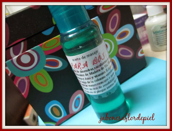 El Aceite de Masaje "Para Dos" -contiene aceites vegetales de almendras,cacahuetes y cartamo,estupendos para masaje además de tener propiedades nutritivas,antiedad y regenerantes entre otros ,vitamina E y una mezcla de aceites esenciales porsupuesto para la ocasión...y para dos...madera de Ho,Ylang-Ylang,Naranja y Anís.
