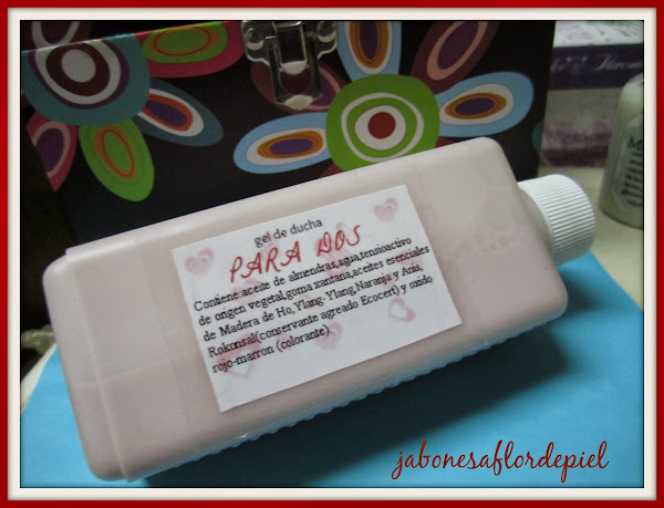 El Gel de ducha "Para Dos" - con aceite de almendras,tensioactivo de origen vegetal,la misma mezcla de esenciales que el aceite de masaje y con una pizca de oxido rojo-marrón,el resultado un estupendo gel de ducha nutritivo,muy espumoso y...para dos.