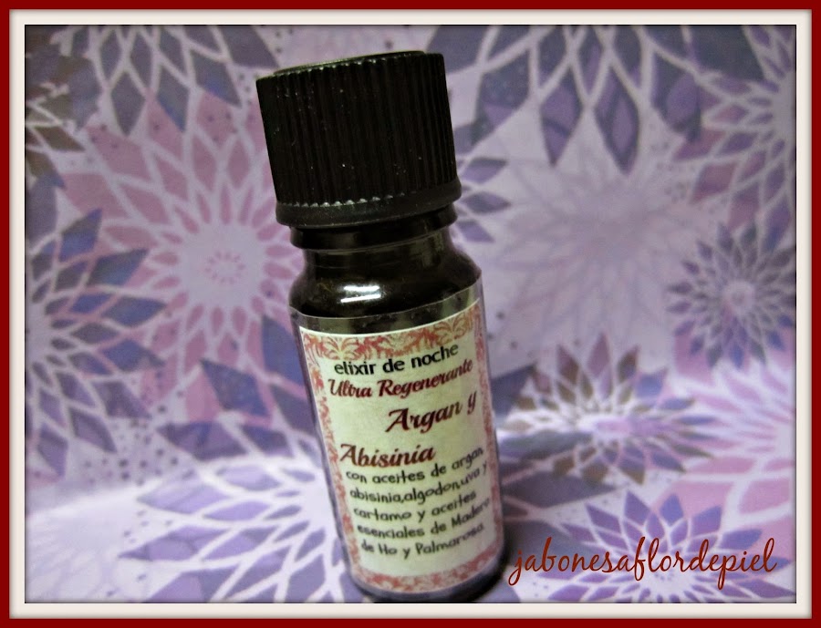 El "Elixir de noche ultraregenerante "Argan y Abisinia" - es para ella,una mezcla de argan,abisinia,algodón,uva y cartamo acompañados de esenciales de madera de Ho y Palmarosa.