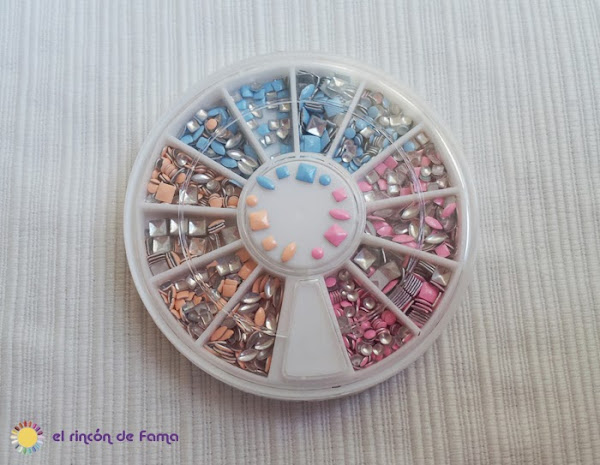 Las tachuelas son una preciosidad y las podéis encontrar en este enlace, su nombre es Colorful Mini Leaf Round Square Shaped Stud Rhinestone Nail Art Decoration, dentro de ese apartado hay varios colores, el que hoy os enseño es el #4 pero echadle un vistazo al resto porque todos me parecen muy bonitos. Su precio es de 2,59 $ con lo que al cambio se queda en menos de dos eurillos.Mirad los diseños tan chulos que trae: