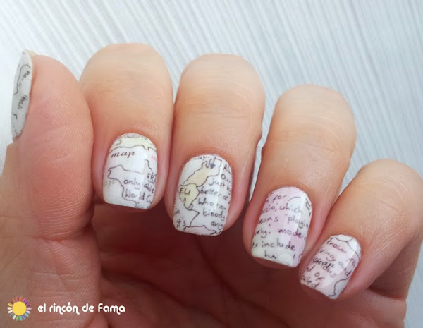 Las water decals son una preciosidad y las podéis encontrar en este enlace, su nombre es Sheet Vintage Letter Graffiti Map Stamped Pattern Design Nail Art Water Decals Transfers Sticker , dentro de ese apartado hay varios modelos, el que hoy os enseño es el QQ35 pero echadle un vistazo al resto porque todos me parecen muy bonitos. Lo mejor es el precio y es que ahora mismo los tienen a 73 céntimos, vamos, para arrasar con todas!! Mirad qué preciosidad: