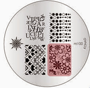 La placa la podéis encontrar en este enlace, su nombre es Nail Art Stamp Template Loop Letter Pattern m100 # 15689 y su precio es de 2,31â?¬. Os he marcado el diseño que he utilizado pero mirad qué bonitos son todos, ¡me encanta esta placa!
