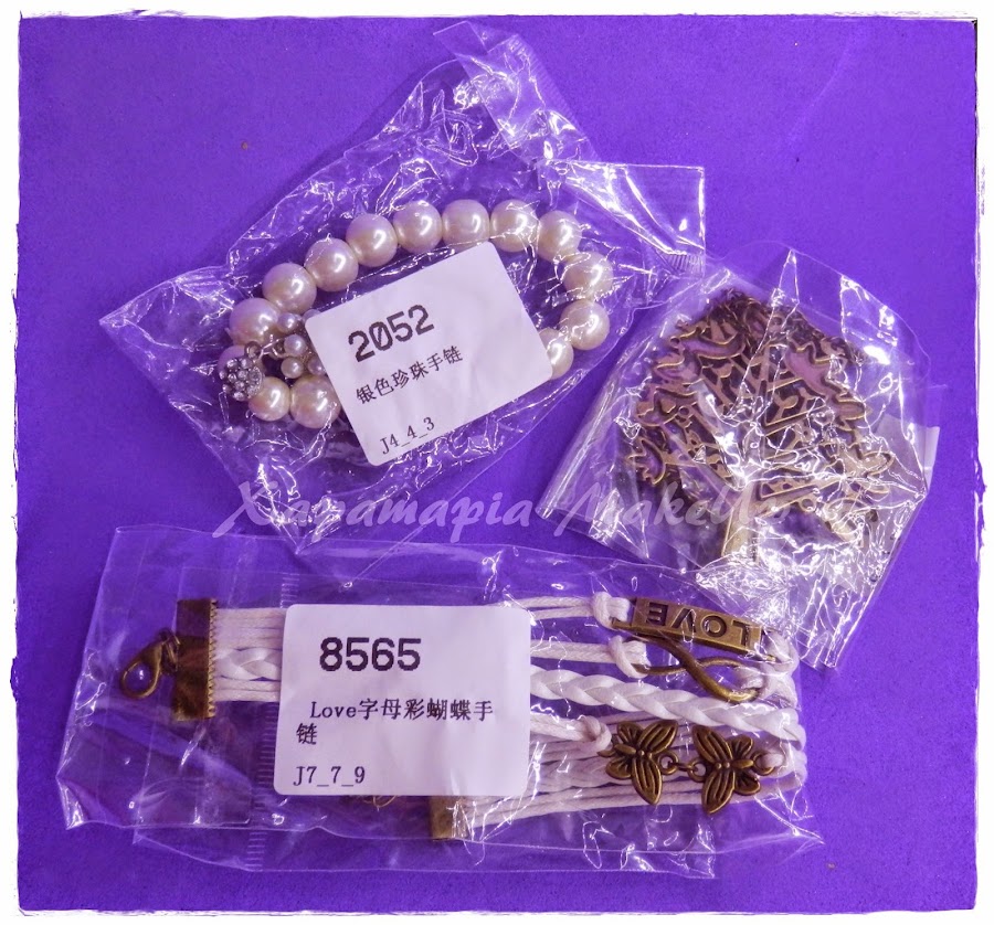 Y como veis encima cada producto venia empaquetado de forma individual en una bolsita. Y aqui teneis los productos que me mandaron, un colgante y dos pulseras que ahora os enseñare con mas detalle.