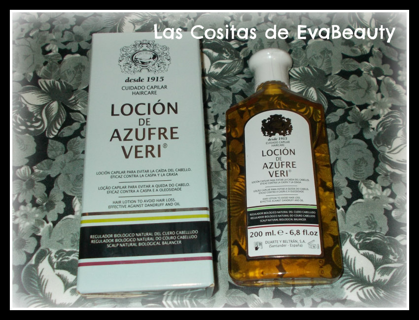 Es la loción de Azufre Veri, indicada para fortalecer el cabello y el cuero cabelludo. Ideal también para mantener el cabello limpio, acondicionado y fácil de peinar.