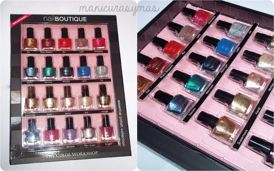 Cuando abrí el paquete y vi esta caja super bonita, me enamoré completamente de ella. Contiene 20 esmaltes, cada uno con su nombre, son de tamaño pequeño (en la caja pone 48 ml, así que supongo que cada esmalte lleva 2,4 ml). Su calidad tampoco es que sea la mejor del mundo, pero oye hacen un buen apaño. Si que hay algunos que con una capa no cubren mucho y otros que con una capa son geniales. Para hacer un regalo o un detalle esta caja me parece que va genial. Voy a ir enseñando los esmaltes poco a poco.