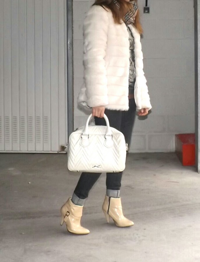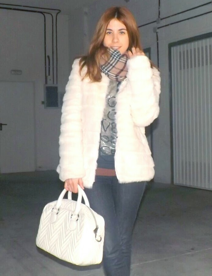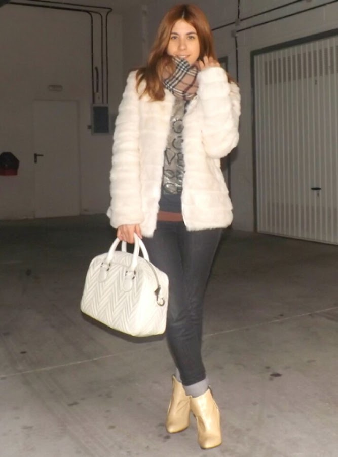 Today I bring a very warm look because it"s freezing. Combine a military green sweatshirt with black jeans and my beloved fur coat. As accessories, my Bimba and Lola bag, nude booties and scarf in brown tones. Have a nice weekend! Kisses.
