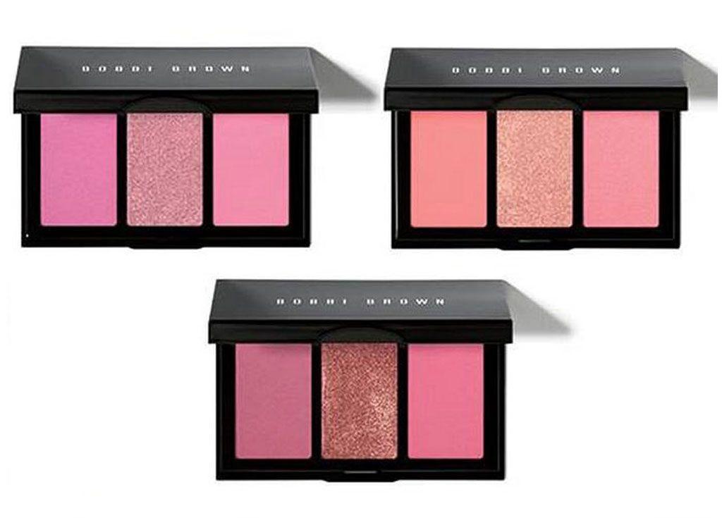 Tres paletas de coloretes que nos ofrecen tres tonos cada una tres tonos, uno de ellos de acabado perlado y los otros dos mate. Los colores mate te servirán para dar calidez y color a tus mejillas, mientras que el tono perlado además te aportará luz y jugosidad al rostro. Hay tres tipos de paletas a elegir: