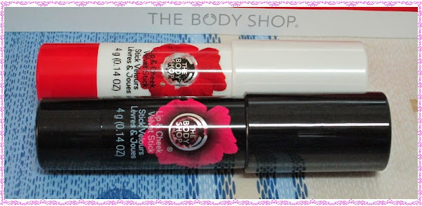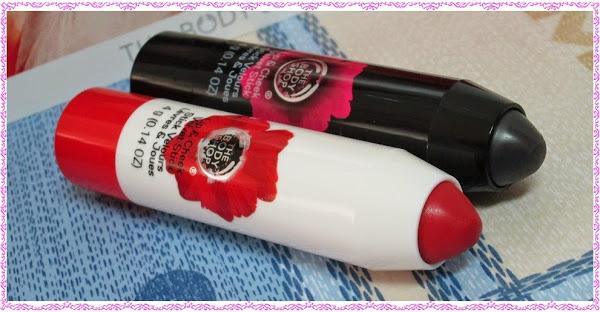 Los del formato blanco, son conocidos como "Sticks Velvet Color Mejillas y Labios Poppy". Están disponibles en 5 tonos diferentes. Cada uno trae 4 gramos de cantidad, y lo que más me gusta de ellos, es que no hay que sacarles punta, ya que la tapa de color de abajo, es giratoria.