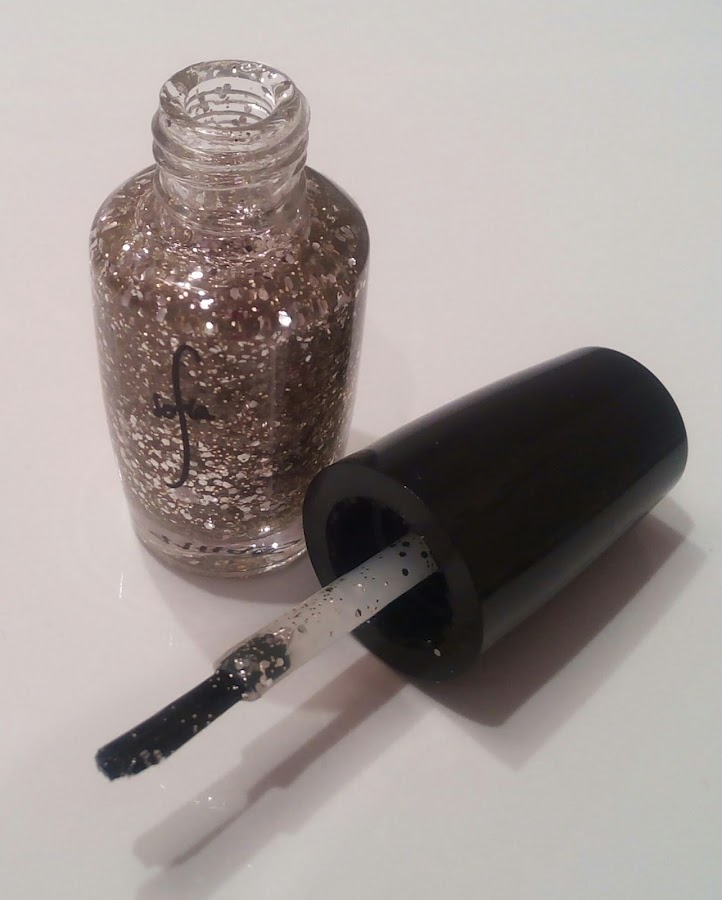 Esta vez he optado por un low cost, el que ha lanzado Deliplus esta Navidad en su colección Sofía, formada por el glitter y otros dos esmaltes más, uno en tonos dorado y otro color plomo.