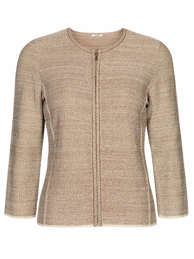 Tonos neutros en este cardigan con cuello redondo. Combinable con otras prendas clásicas o con una camiseta de color vibrante y jeans para darle un toque más actual.