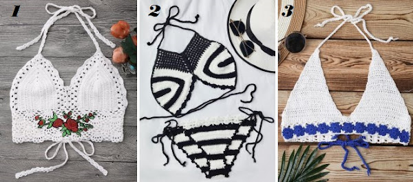 1- Top crochet rosas AQUÍ, 2- Bikini crochet navy AQUÍ, 3- Top crochet flores AQUÍ