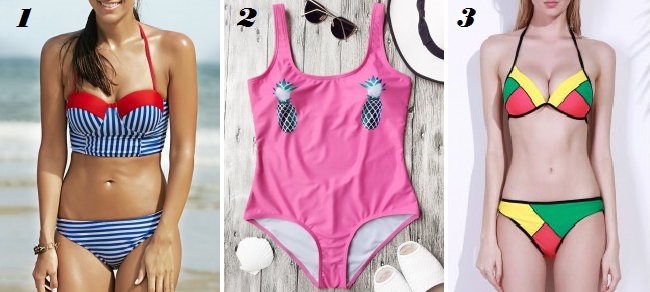 1- Bikini rayas AQUÍ, 2- Bañador piñas AQUÍ, 3- Bikini tricolor AQUÍ