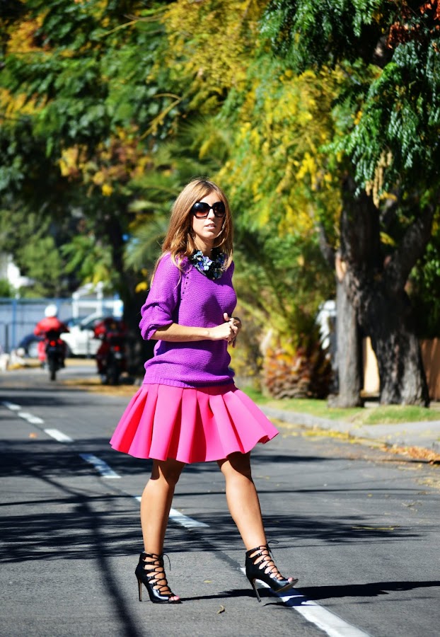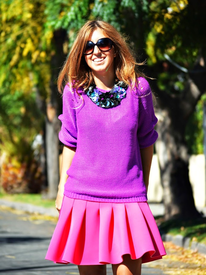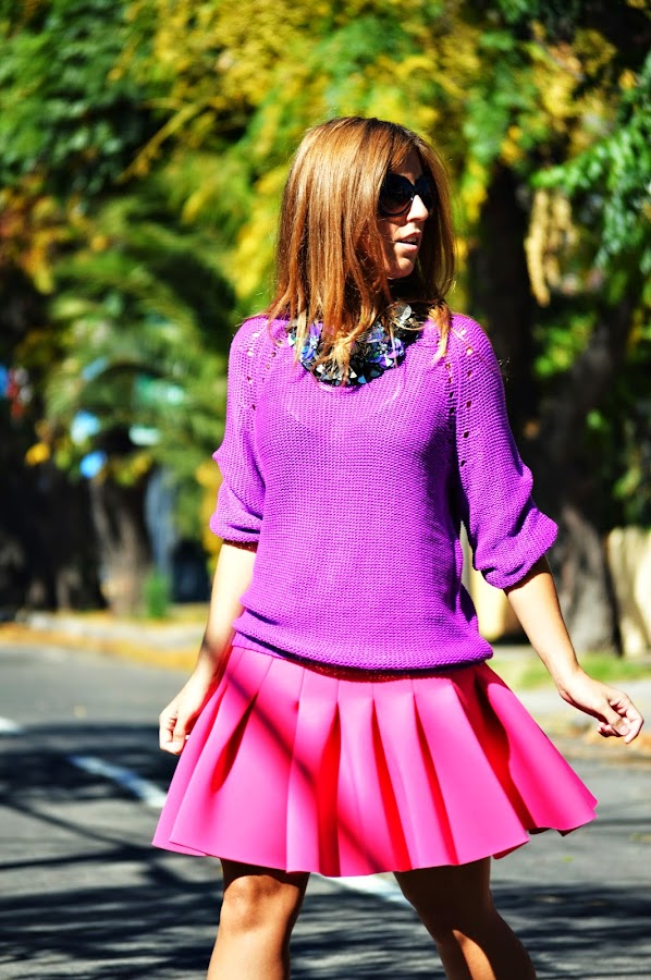 Although I´m aware that Spring and Summer are the most appropriate time of the year for this trend, I like it so much that I use it throughout the year. There´re several ways to combine colours according to the colour wheel to achieve the desired effect using color block: combining complementary colours (colours opposite on the colour wheel), combining analogous colours (colours that belong to the same family, as in this case purple and fuchsia) and triadic colour combination (for me, the most risky way to combine color block: it"s about mixing colours that shape a triangle on the colour wheel). Thanks for all your comments! X.O.X.O.