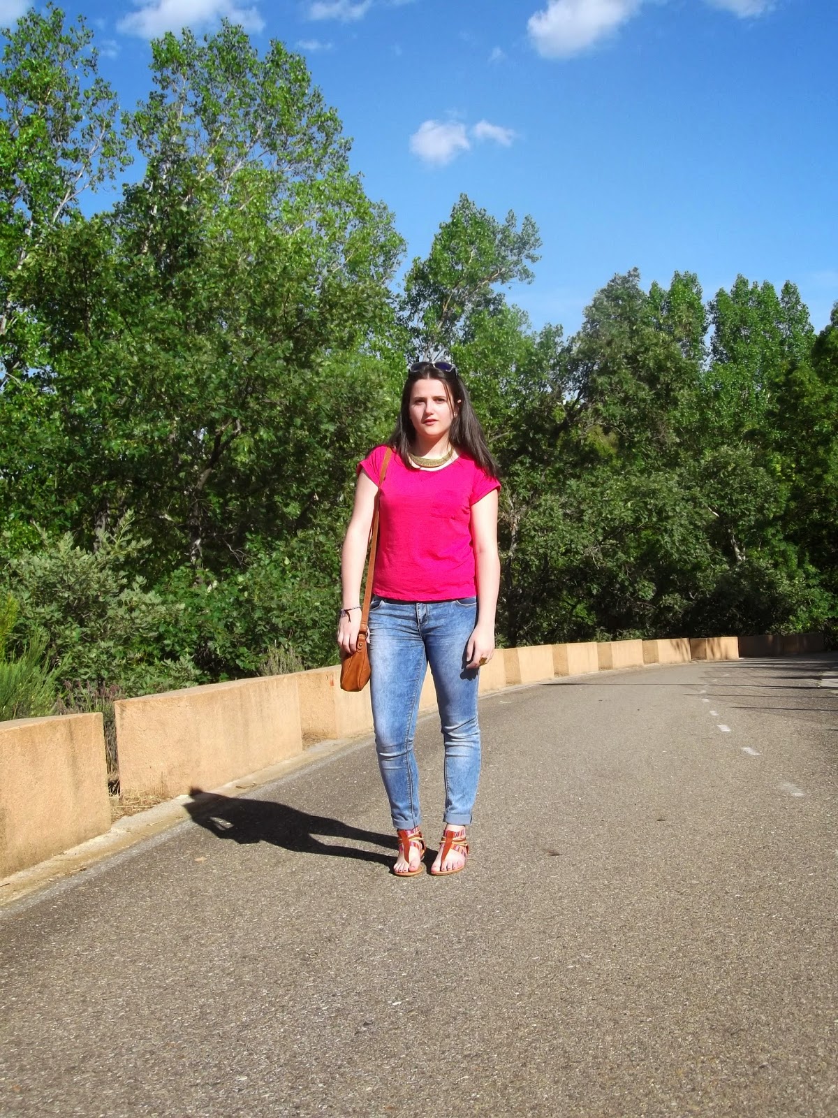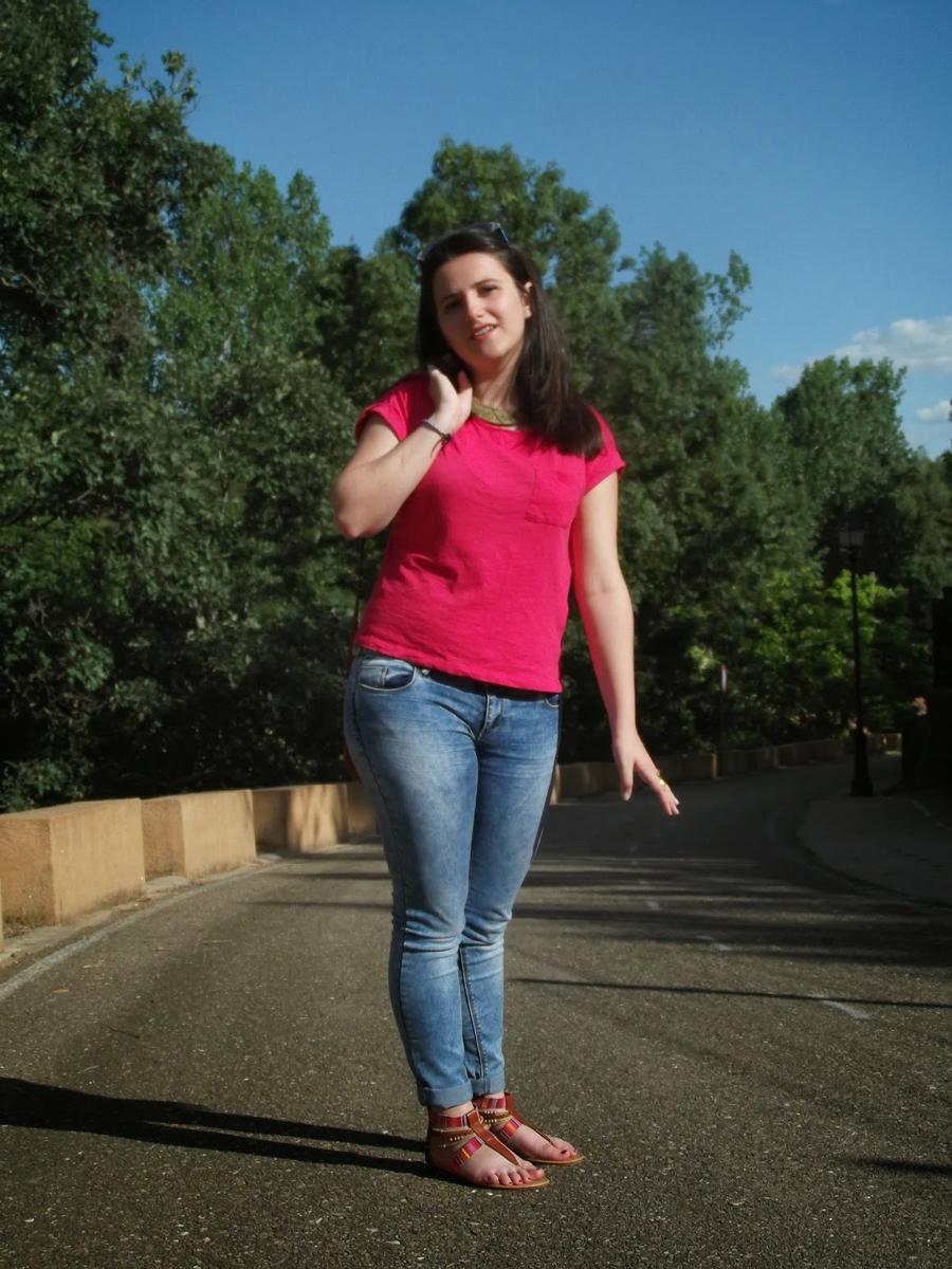 Me encanta este look por los colores, me encanta esa camiseta y su color. Los combiné con estas sandalias que ya sabéis que me encantan.