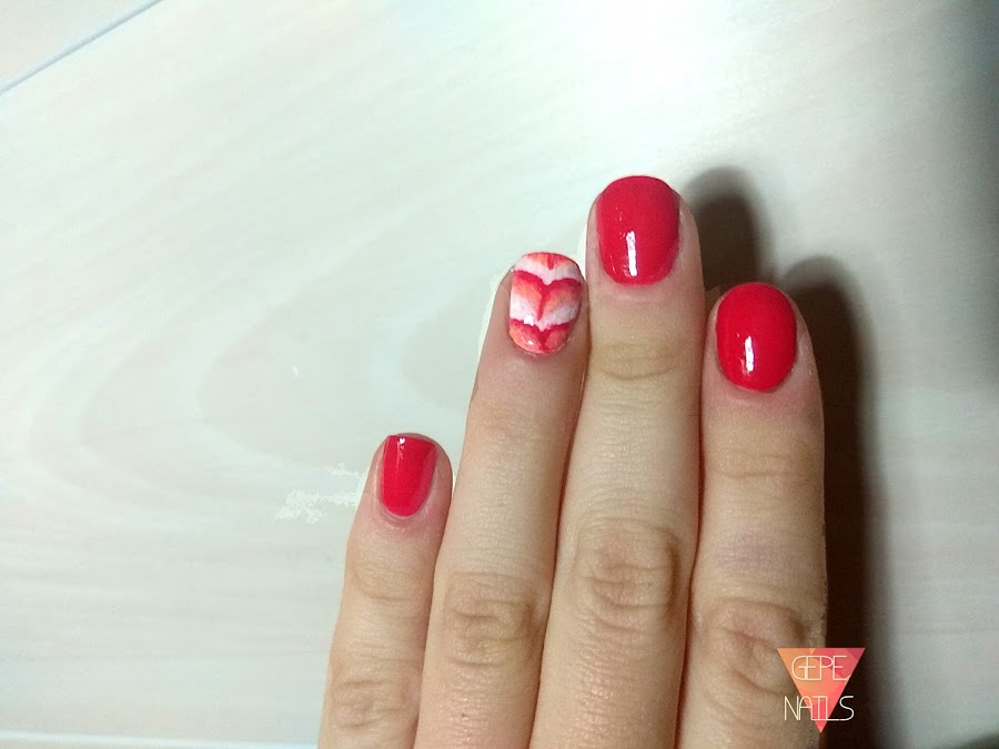 Está todo hecho a mano alzada. He usado principalmente el color de OPI, además de un tono melocotón y blanco. Mezclando todos, he conseguido que se difumine más o menos el color, pareciendo el lomo de una gamba.