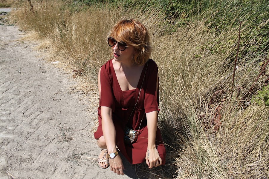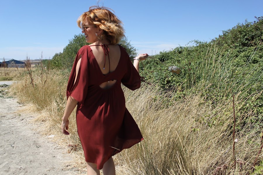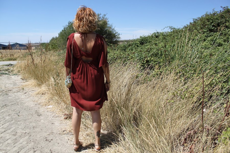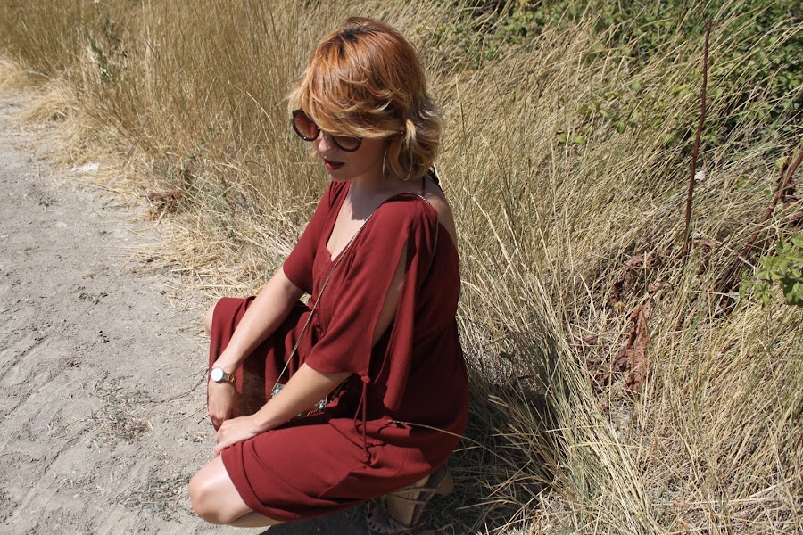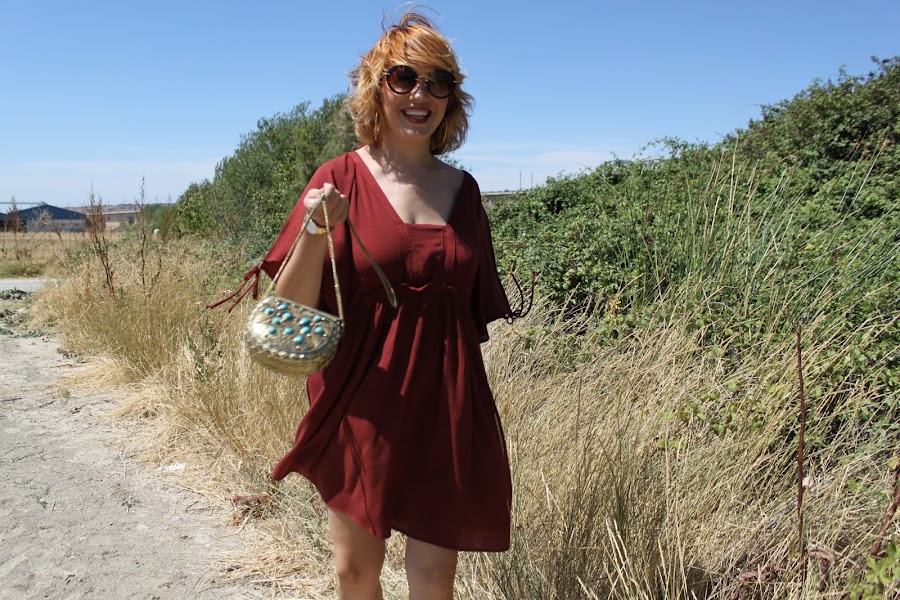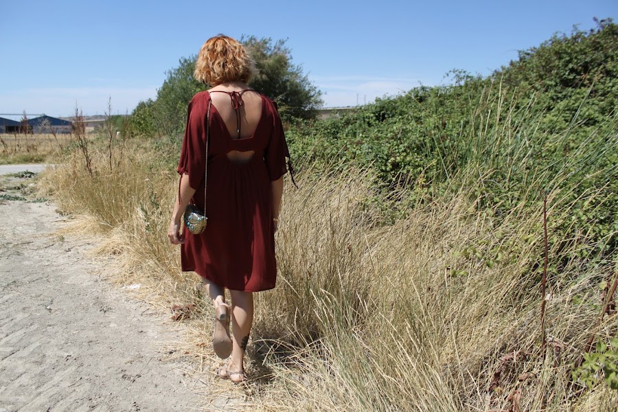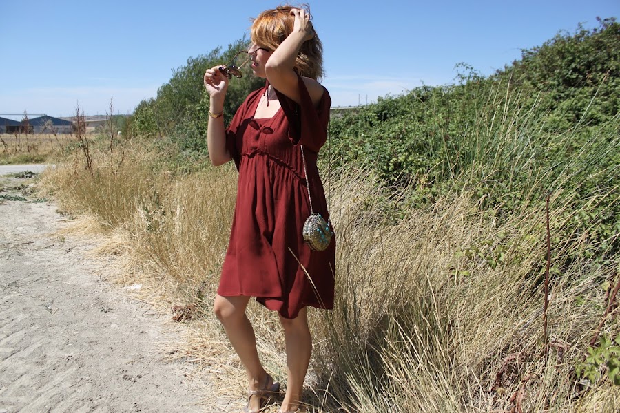 Ahora sí, comenzamos con el outfit de hoy. Mi nuevo vestido de estilo boho en color teja, uno de los colores que este próximo otoño va a dar mucho que hablar. Firmas como Dior o Gucci ya se han rendido a este precioso color. Lo he combinado con mis nuevas sandalias de Una Mas, clutch en dorado y maxi gafas de ZeroUV.