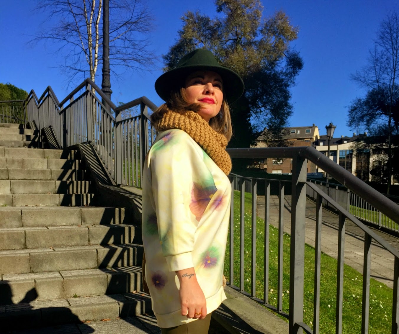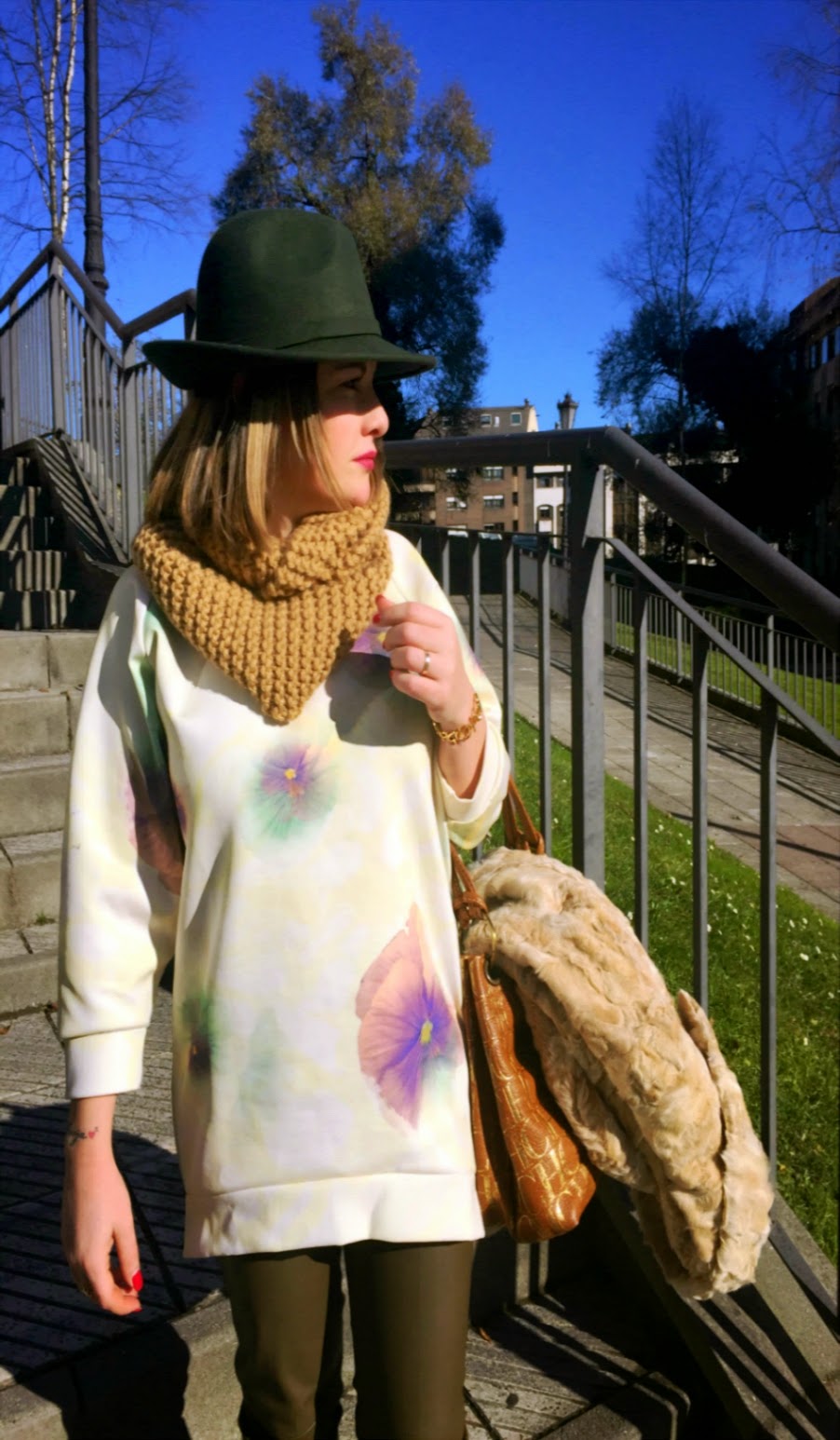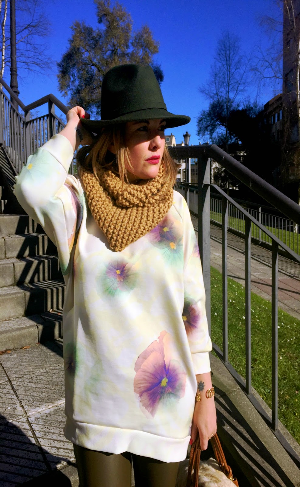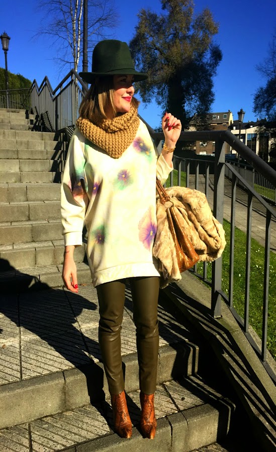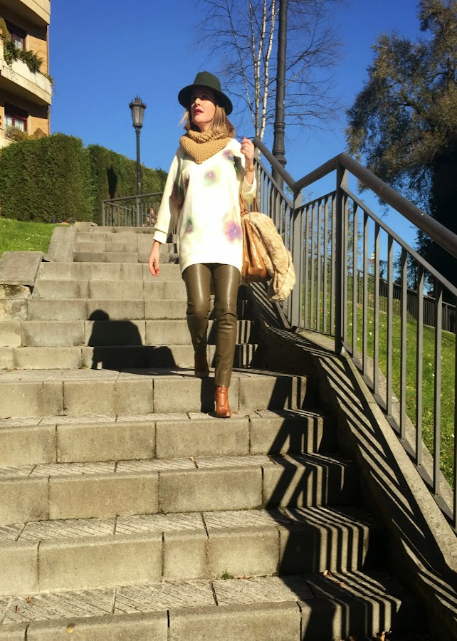 El sol sigue brillando estos días. Hace mucho frío por la mañana, pero merece la pena por ver este precioso cielo azul. Esta sudadera es de la primavera pasada pero con estos días me apetecía darle un poco de color al look. Me resultan muy cómodas estas prendas grandotas para combinarlas con partes de abajo ajustadas. También me gustan mucho sobre un minivestido. En el caso de hoy me decanté por mis leggins de polipiel todoterreno, tanto estos en color caqui como los negros son siempre mi salvación el día que no se me ocurre que ponerme.SUDADERA: ZARA.