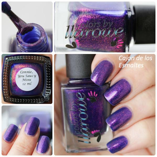 Y seguimos la racha de hermosos esmaltes violetas. En el post anterior les mostraba mi violeta favorito, Imperial de Picture Polish. Hoy otro del "top five", un indie de la marca Colors by Llarowe (de la famosa tienda www.llarowe.com): Connie, You Saucy Minx de la colección primavera del 2014. Un crelly violeta con shimmer o brillo rosado sumamente intenso y del cual no tengo ni la más pálida idea de porque le pusieron ese nombre. Si alguna sabe avise :)