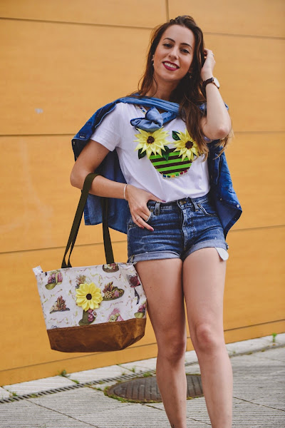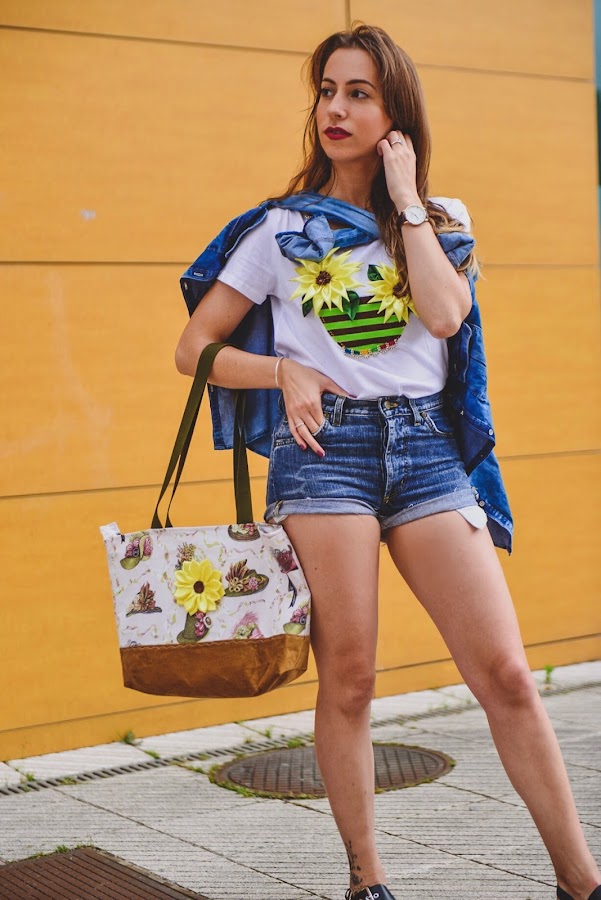 Eso mismo es lo que busco en esta temporada, energía y no conozco mayor que la que los colores me proporcionan. Confieso que, nunca fui una enamoradiza de los estampados ni de los tonos demasiado llamativos. Lo que sí es cierto, es que en su justa medida, pueden llegar a poner la guinda del pastel a cualquier prenda convencional. Es el caso de la propuesta de esta semana. El todo terreno denim combinado con un arriesgado estampado de flores, emulando los campos teñidos de amarillo en esta época del año. Una creación única y a medida, junto con el bolso, de una de las diseñadoras de Piccola Lucía, firma de moda que agrupa a diferentes diseñadores asturianos y con diversidad de estilos, para conseguir la prenda que mejor se adapta a ti. Échale un vistazo a mis dos posts anteriores y sorpréndete.