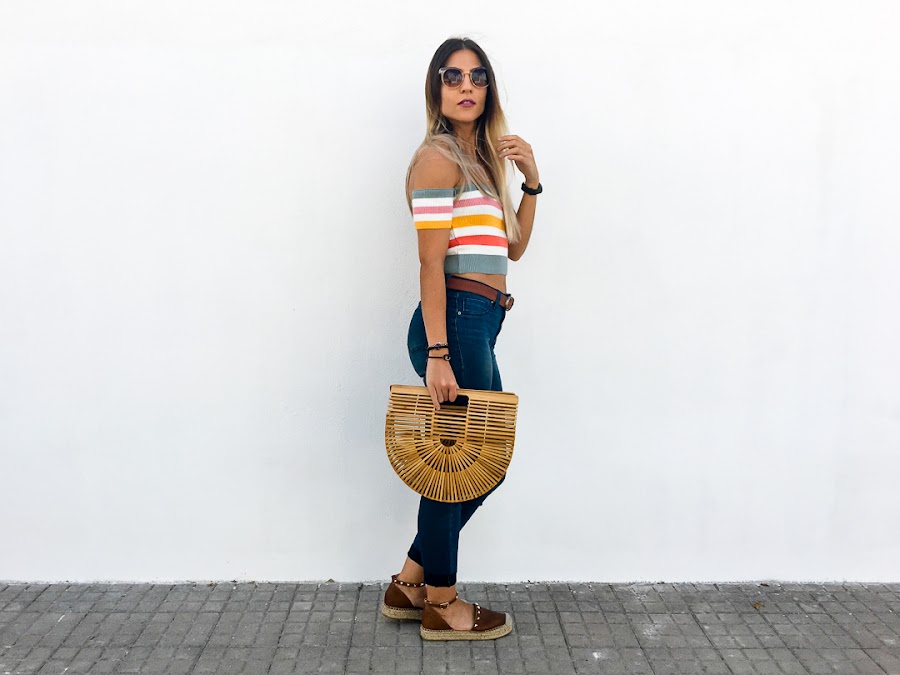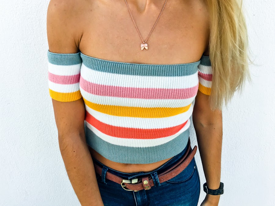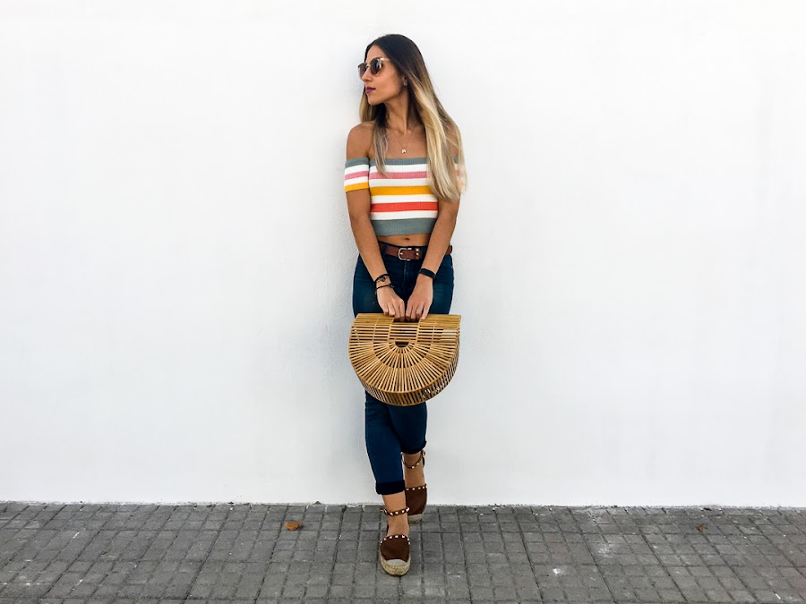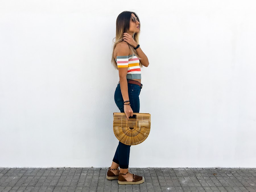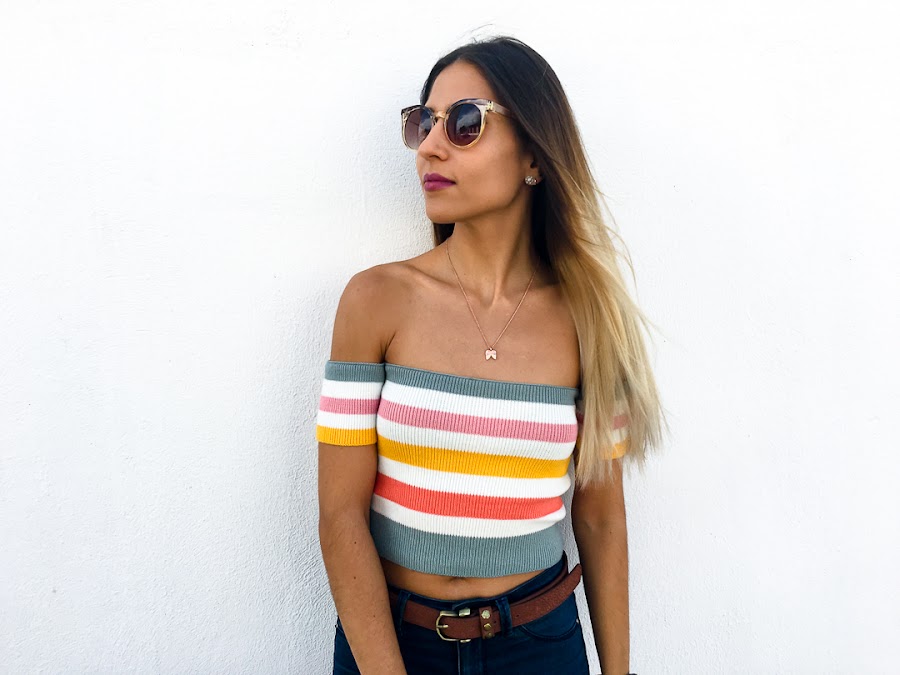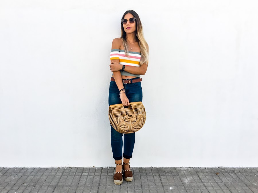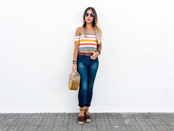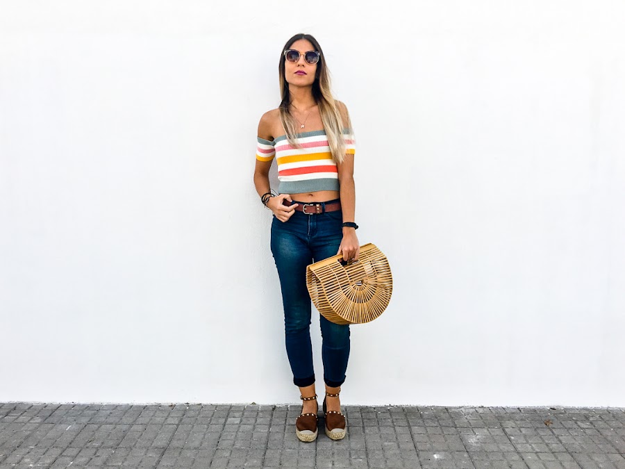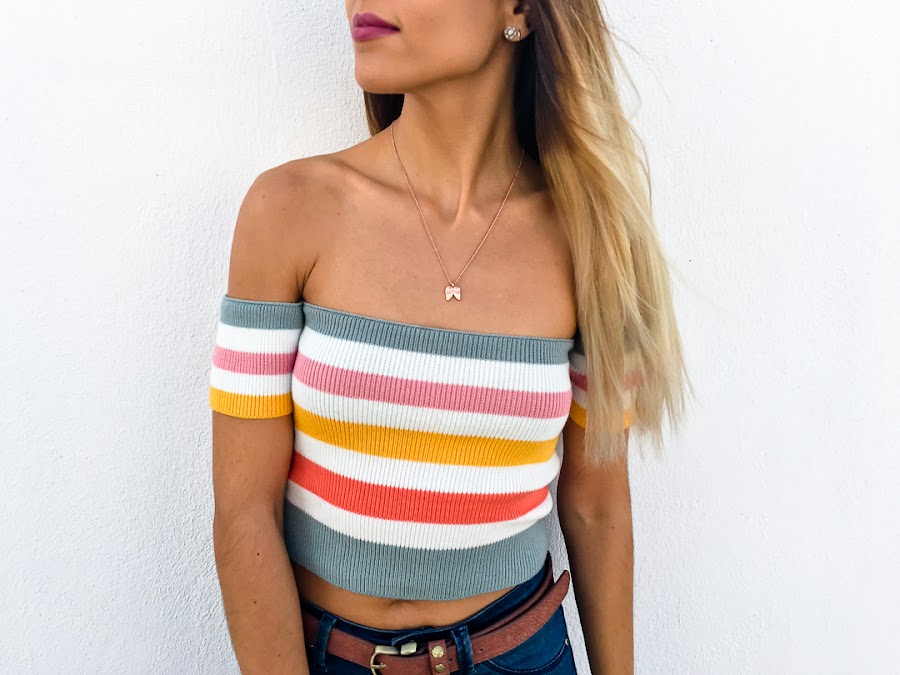 Hoy os enseño un look muy casual, cómodo y sencillo sin dejar de ser chic. El prota es un top off shoulders de rayas de colores de DRESSLILY, que queda ideal! Es de punto y se adapta al cuerpo perfectamente.