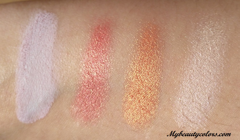 Preciosa!!!!! Me gusta por la diversidad de colores y porque tiene sombras de acabado mate y también de acabado shimmer. Las sombras tienen una textura muy suave, pigmentan una barbaridad (incluso las mates), la aplicación es fácil, se trabajan bien y no sueltan polvo. En cuanto a la duración no os puedo decir mucho porque siempre llevo prebase para sombras, así me aguantan todo el día perfectas. Para que podáis ver mejor los tonos y la pigmentación, a continuación, os dejo unos swatches hechos con el dedo sobre el brazo directamente, sin prebases ni filtros. El color que se ve, es el real.