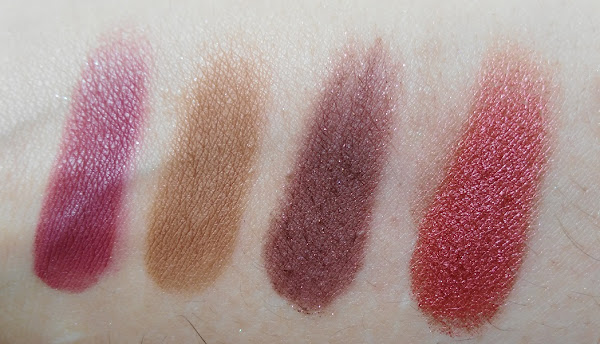 No me diréis que no son una preciosidad!! A mi me tienen enamorada y no descarto comprar algunos más en un futuro. Cada labial cuesta 7 dólares, aunque yo los compré aprovechando una oferta y me salieron un poco más baratos. A continuación os dejo swatches de los dos para que veáis lo bonitos que son.