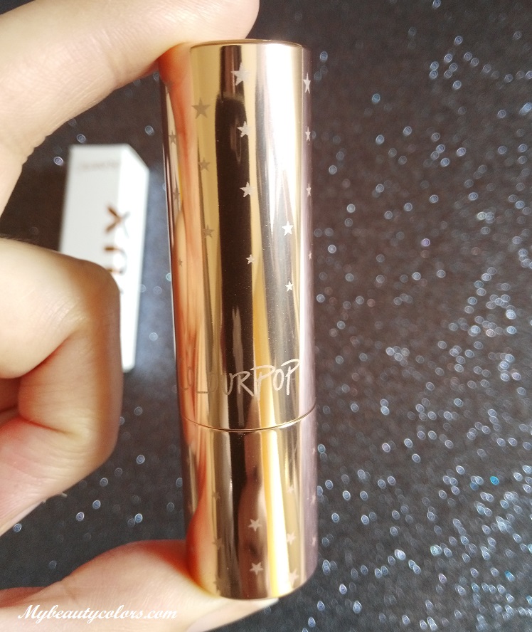 La barra de labios tiene un packaging dorado decorado con estrellitas grabadas que le da un aire lujoso y muy atractivo. Debo decir que no es de plástico ya que pesa un poco, por lo que deduzco que debe estar hecho de algún metal. Os dejo otra foto en la que podéis apreciar mejor el detalle.