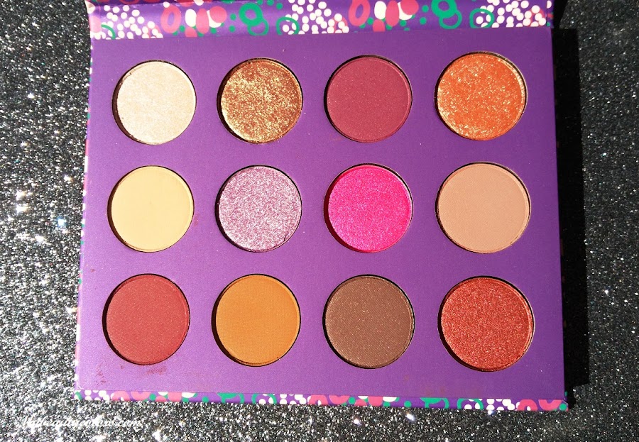 La paleta es de cartón duro, con cierre imantado y un tamaño pequeño y muy práctico, ideal para llevar de viaje. No tiene espejo ni brochita aplicadora, pero es algo que tampoco me importa demasiado. Al abrirla nos encontramos con 12 preciosas sombras en diferentes acabados ya que hay sombras mate, shimmer y más metalizadas. Los tonos también son variados.