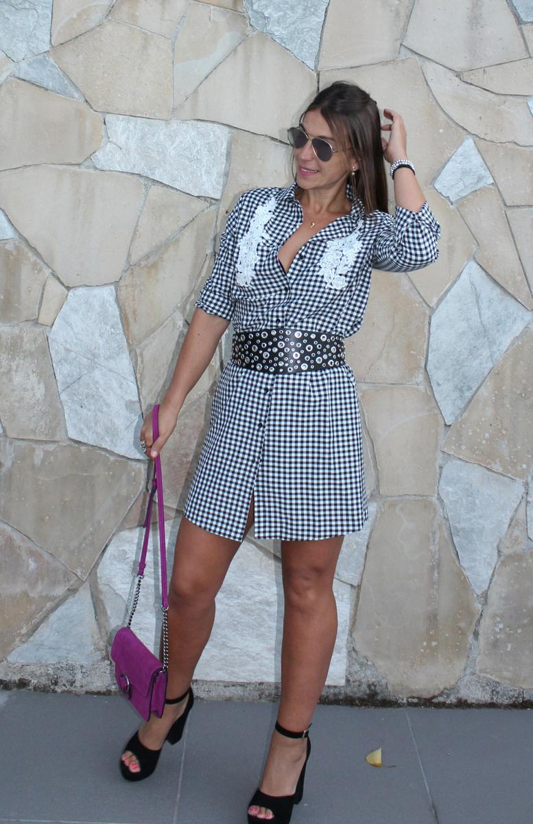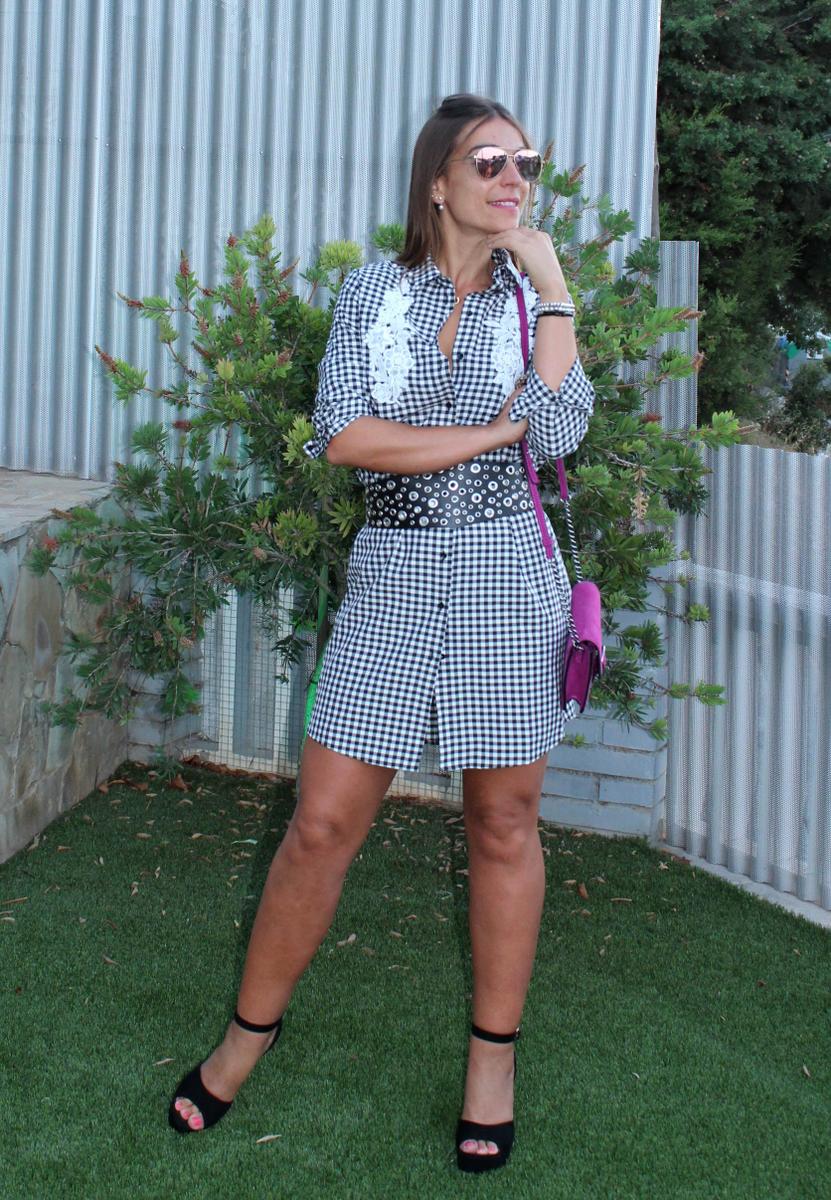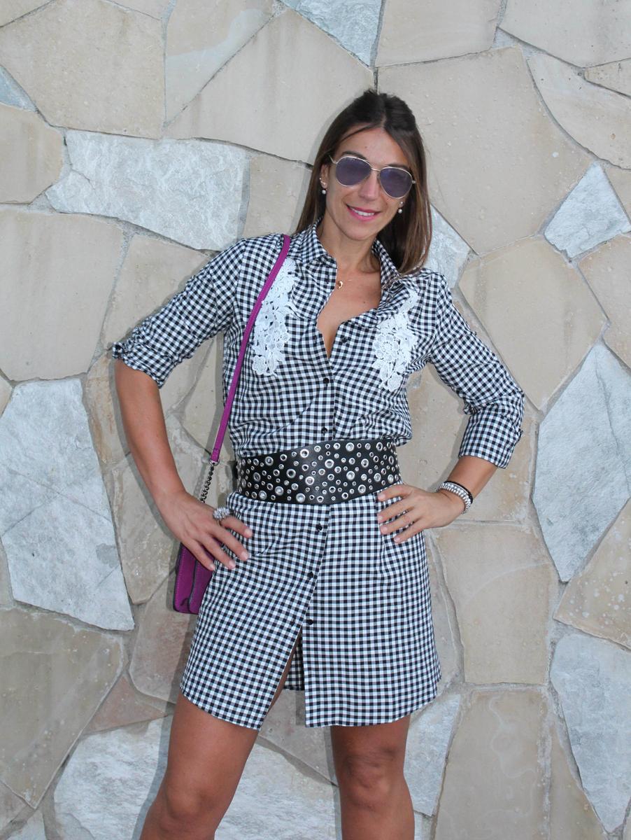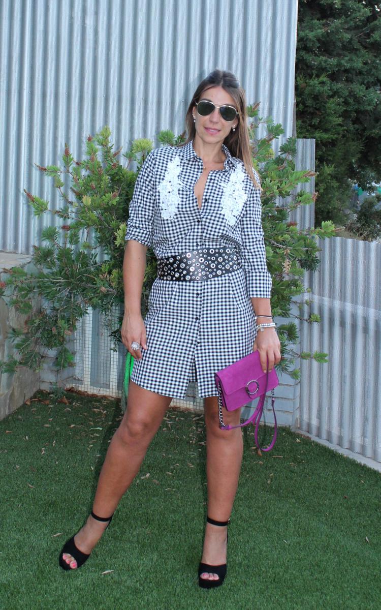 Para la ocasión elegí un vestido camisero, adornado con unas bonitas flores en crochet blanco en la parte delantera. Al igual que la temporada pasada, los maxi cinturon siguen pisando fuerte, en todas sus versiones, corset, con lazada, fajin….. En mi caso elegí uno tipo fajn con multitud de perforaciones y arandelas que le da un punto rockero a este complemento.
