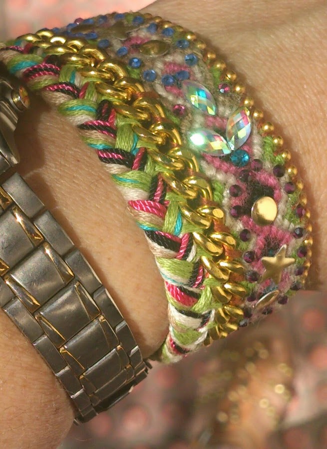 Bonito verdad?? Ese mismo día me marché de allí con esa sensanción de haber encontrado lo que había dado por perdido, lo complicado que resulta encontrar algo concreto ¿no creéis?, con el gusto de haber conocido a una persona especial y un objeto a partir de entonces único con tapiz antiguo indio en algodón y brocado en cuero ....además de una de las pulseras del verano (aaaiiinnss Marina lo rápida que estuvo mi hermana para apoderarse de ella!! :)):