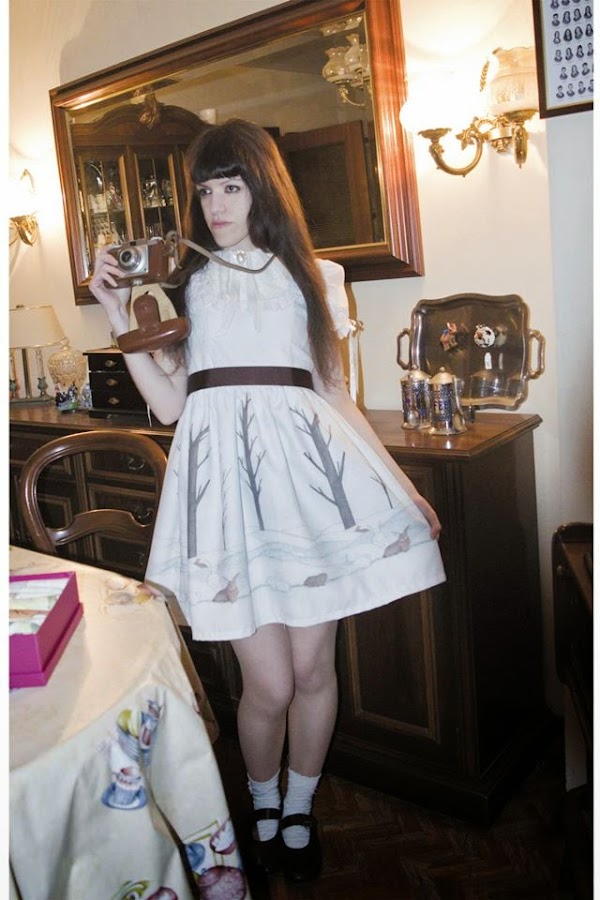 Su especialidad son las faldas y las que mas le gustan son las de estilo lolita, pero eso no implica que no pueda hacerte algo totalmente moderno (véase el kimono o el vestido azul).