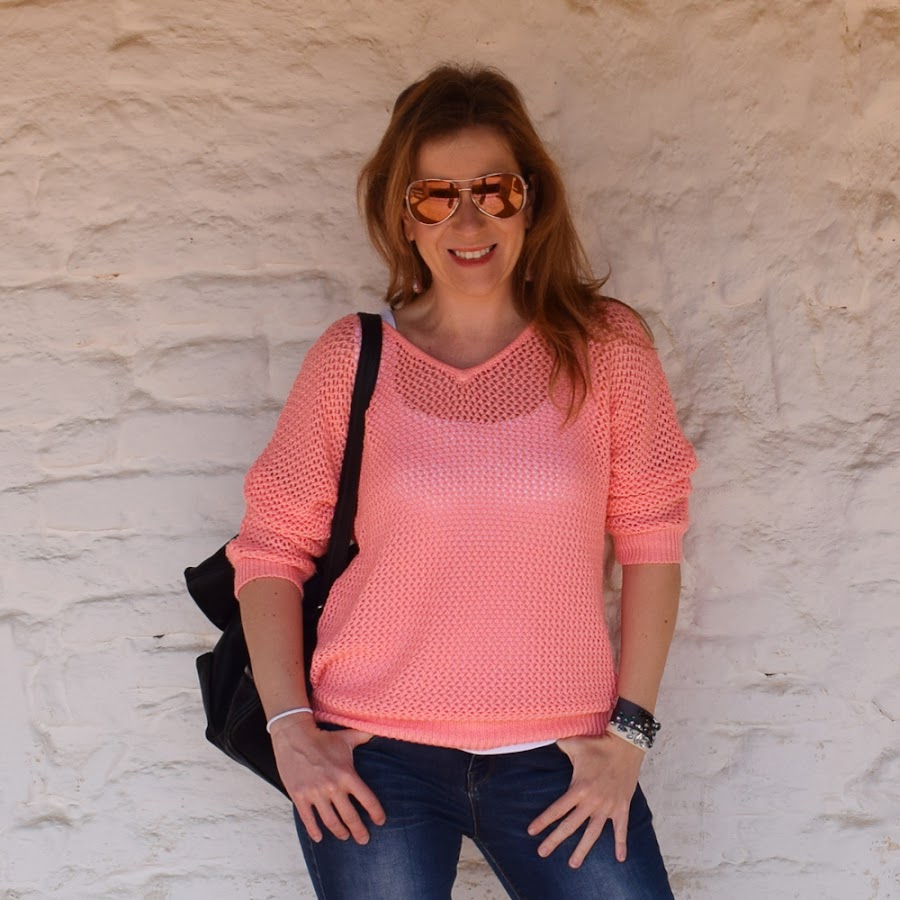 - Un jersey para los momentos de más fresquito por las tardes. Este de estilo calado tiene ya sus años, pero el tejido es tan bueno (y eso que es low cost), que está impecable como el primer día, como puedes ver aquí en mi último look de embarazo.