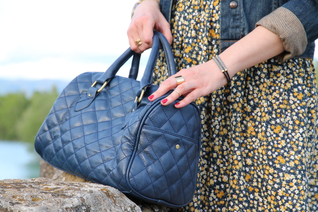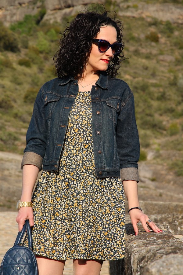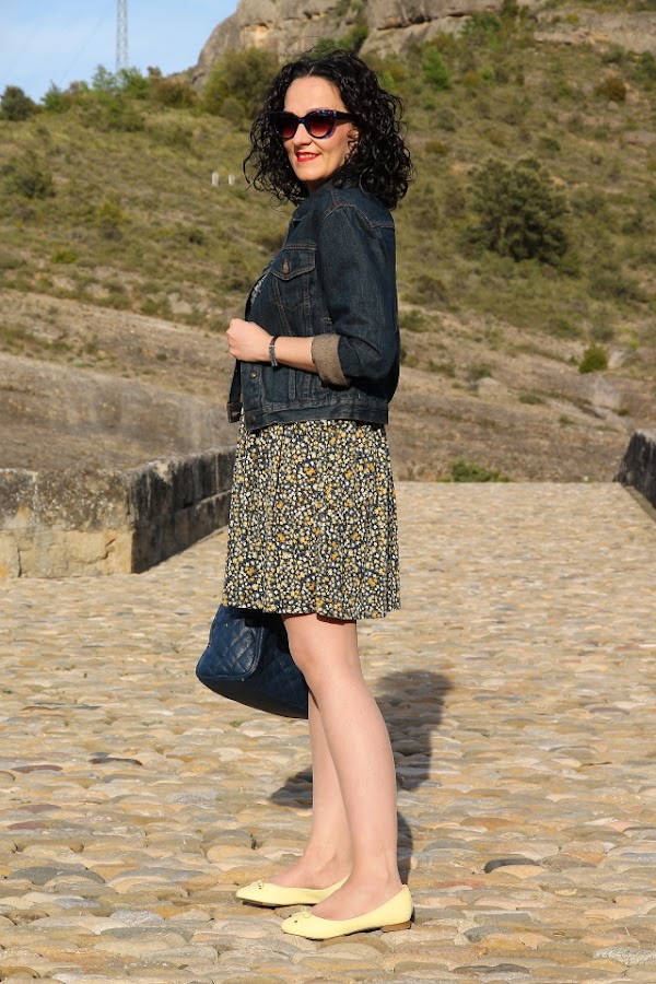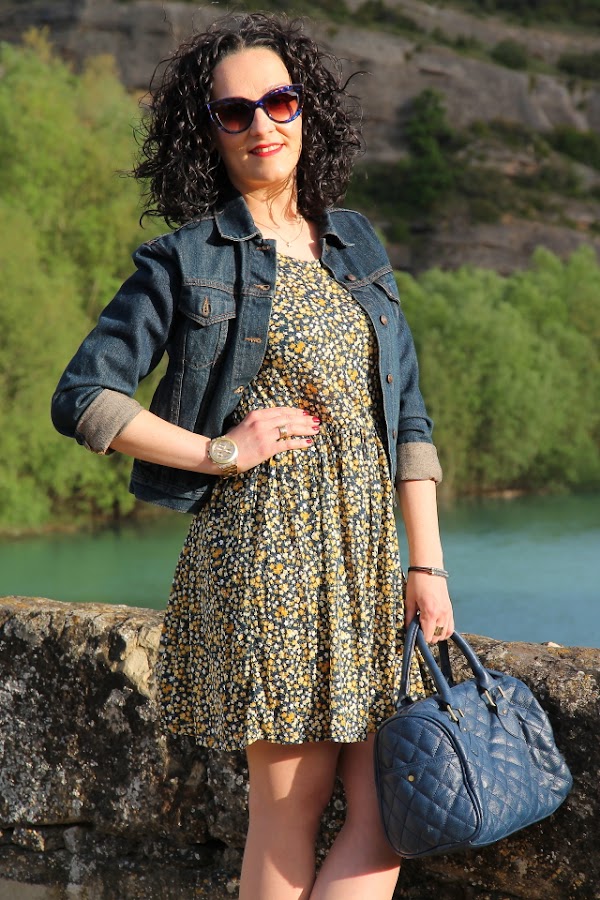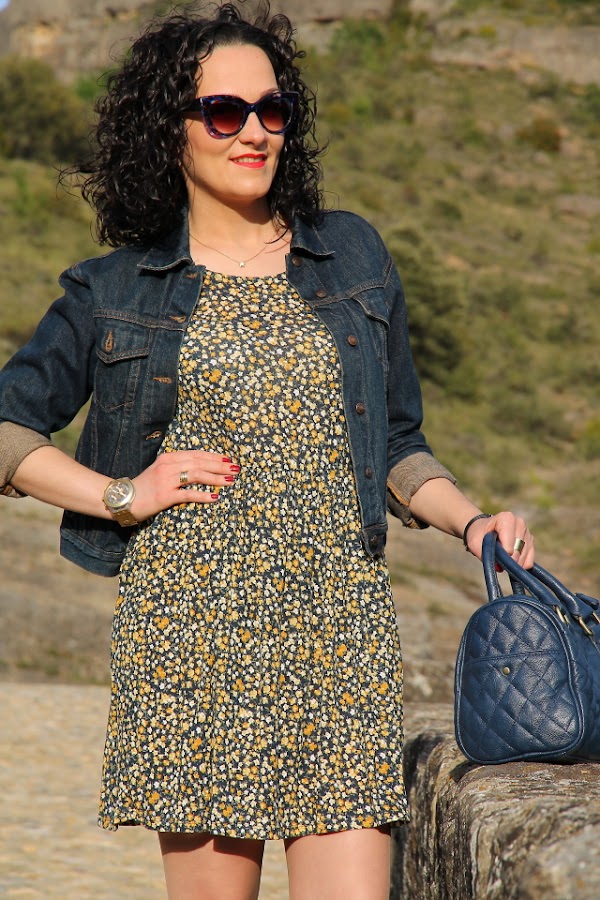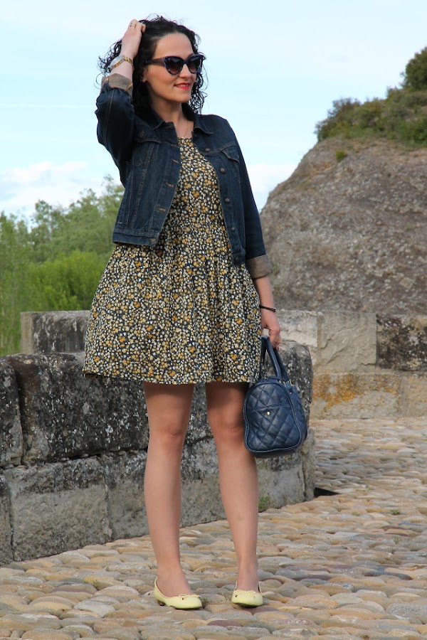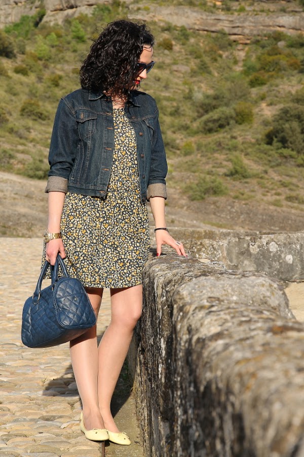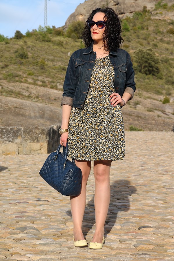 Hace unos días quedamos con unos amigos que viven en un pueblo del Pirineo Aragonés para pasar una tarde juntos. Conociendo la zona y sabiendo los lugares tan bonitos que hay para pasear elegí un look cómodo que me permitiera disfrutar de la tarde sin problemas. Mi look estuvo compuesto por un vestido oversize de punto con estampado floral en tonos azul marino y amarillo, lo acompañé con mis recién llegadas bailarinas amarillas que me fueron genial para andar por las calles empedradas.