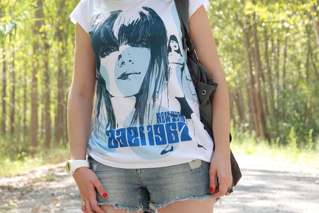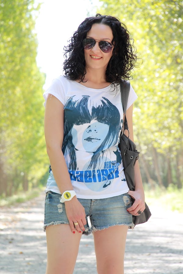 Ya sabéis que cuando tengo tiempo libre me gusta pasarlo junto a mi marido y Nico, aprovechamos sobre todo por las mañanas para dar largos paseos los tres juntos que normalmente acaban tomando un vermut. Para estos momentos siempre busco la comodidad, y nada mejor que una camiseta de algodón, shorts tejanos y mis nuevas sneakers que tanto me recuerdan a las Adidas Stan Smith que llevé cuando era adolescente.