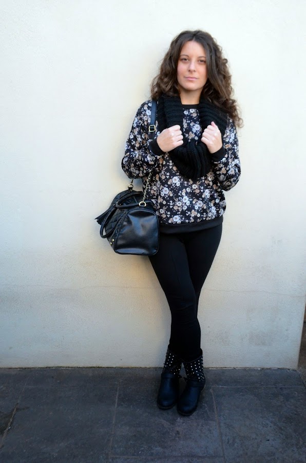 ¿No tenéis días de esos en los que nos os apetece llevar tacones ni arreglaros? Hoy os muestro un look cómodo y muy casual, como yo digo, un todoterreno. Unos leggins, una sudadera, unos botines planos y un buen cuello de lana para no coger frío en la garganta.