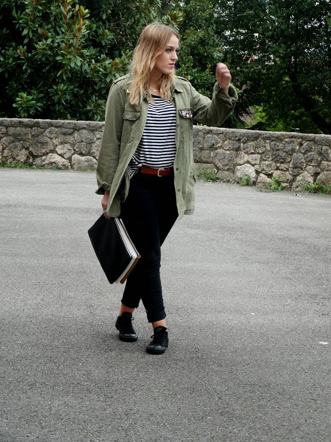 Si parecía que hace unas semanas llegaba definitivamente el Otoño y con él, el frío, otra vez este tiempo loco vuelve a dar la vuelta. Parece que este año me adelante con el famoso "cambio de armario" y toca volver a bajar chaquetitas finas, sandalias... no se por cuanto tiempo, pero mi colección de abrigos y ponchos, que tantas ganas tengo de enseñaros, tendrán que esperar! El look de hoy es de la semana pasada, como ya sabéis las que nos seguís un poco, los outfits cómodos y sencillos son mis favoritos para ir a clase y en general para el día a día. La chaqueta en concreto, es del año pasado y causo un gran furor en tienda, así que imagino que muchas de vosotras no seréis la primera vez que la veis.