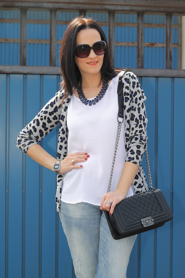 A principios de esta semana a través de mis redes sociales os enseñé este look que me puse para ir a trabajar. Otra vez volví a confiar en los básicos con mis queridos boyfriend jeans combinados con un top básico y cardigan en tonos grises, azules y negros, que le daba un toque chic al look gracias al estampado animal. Pero si algo me gusta de este outfit es mi nuevo collar joya. Lo compré en Born Pretty, una de mis webs preferidas para adquirir complementos por la buena relación calidad precio que ofrecen. Además ahora si introducís el código HDB10 podréis aprovecharos de un 10% de descuento en vuestras compras.