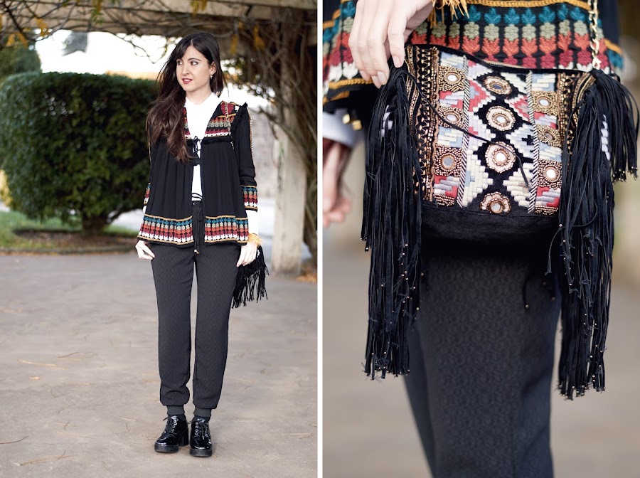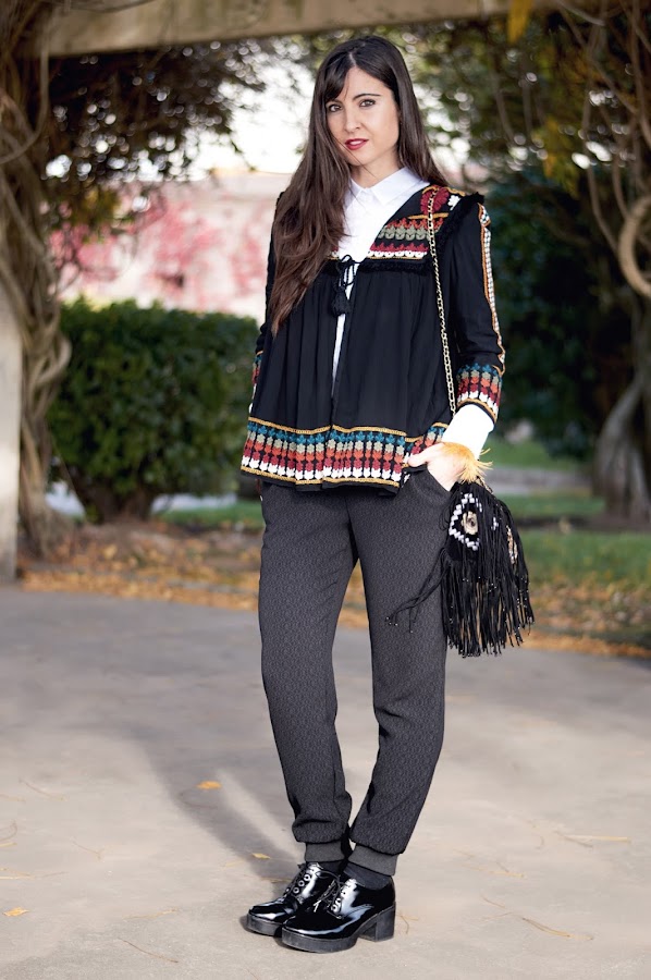 Camiseta y pantalón: Bershka/ Zapatos: Zara/ Chaqueta: La tienda de Julia/ Gafas: Rodenstock Borlas, abalorios, bordados... un look repleto de detalles y muy colorista para empezar con ánimo la semana! Está claro que en esta ocasión la verdadera protagonista del look es esta camiseta de manga larga que no pasa inadvertida. Para neutralizarla un poco he optado por combinarla con un pantalón tobille ...