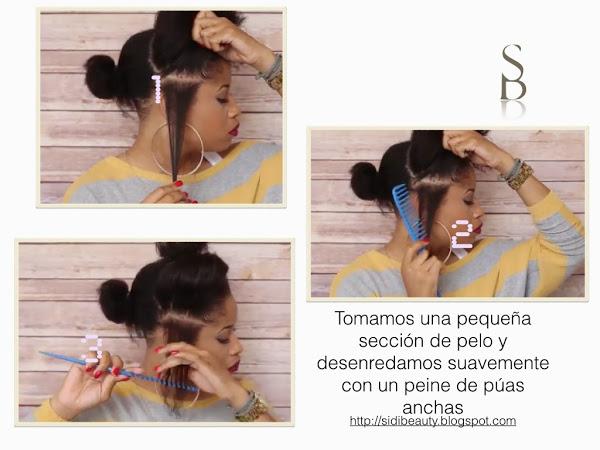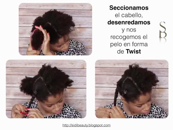 Sujetando el pelo de esta forma lo que tratamos es que el pelo se seque de la forma más lisa posible, y por esta razón es preferible hacerse Twist, en lugar de trenzas o bantu knots.4- Secamos