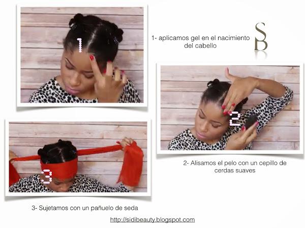Alisamos el pelo de los bordes con la ayuda de un cepillo y si el pelo es muy rizado, grueso y/o rebelde lo marcamos/aplastamos con un pañuelo o turbante de seda y lo dejamos secar.