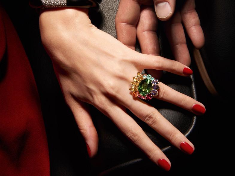 Tal como he comentado anteriormente, si los anillos son pequeños, queda muy bien combinar varios entre sí. Si llevamos anillos pequeños, la manicura puede tener diseños muy llamativos, aunque también se pueden pintar las uñas de una forma más discreta e igualmente queda muy bien. En el caso de que sean anillos multicolor, unas uñas en la misma gama de tonos sería una opción muy alegre y original.