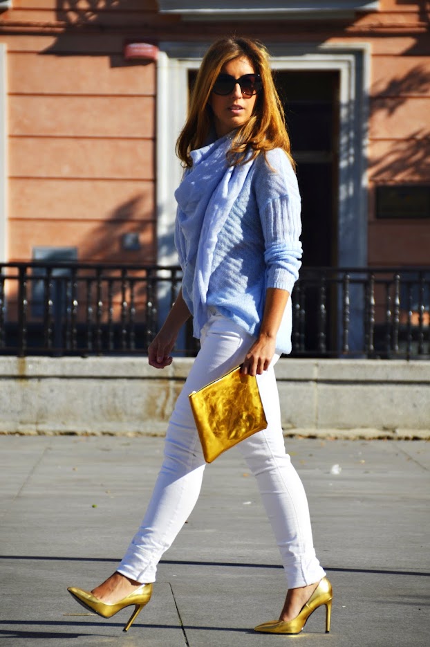 Babyblue sweater: Mango / Scarf: Primark / Jeans: Sfera / Heels: Zara