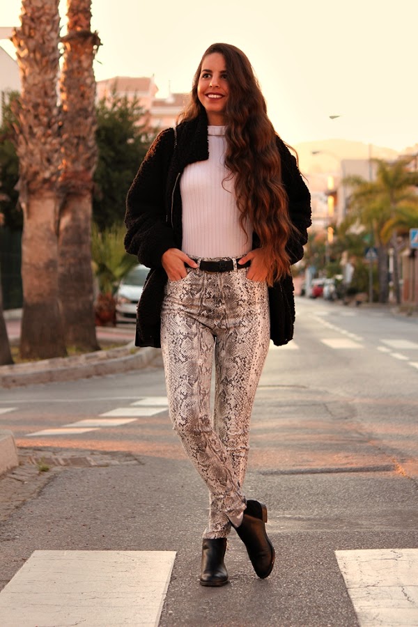En EstePost podréis ver un look con chaqueta de leopardo y hace poco me compré unos pantalones con el estampado de serpiente, os lo enseñé en EsteVideo de mi canal de Youtube. Para mi, es un estampado con mucha personalidad y lo que más me gusta es darle protagonismo, para ello tengo 3 reglas que nunca rompo y que se pueden aplicar a cualquier estampado animal print.