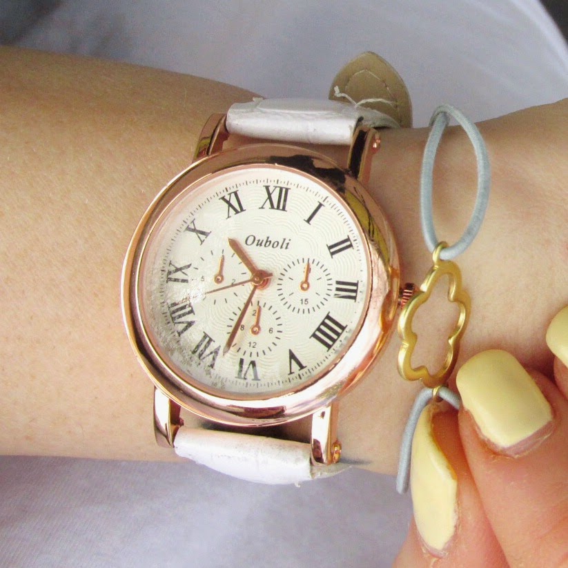 También estoy feliz con mi nuevo reloj. Nunca había tenido uno con la correa blanca y me costó decidirme pero creo que va a ser uno de mis preferidos. Lo podeis encontrar en BORN PRETTY STORE. Es un página web con multitud de modelos de relojes de mujer para todos los gustos y estilos.
