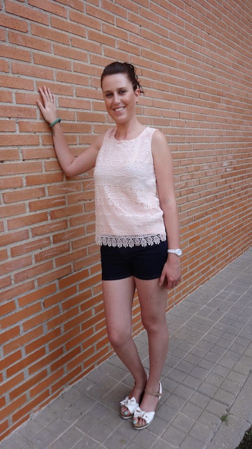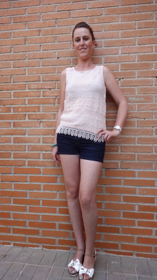 Para la parte de abajo, el short es ideal para ella porque se trata de una chica alta y el enseñar piernas potencia mas su altura. Por lo tanto, tanto si lleva cuñas como si decide ir plana, siempre se vera estilizada.