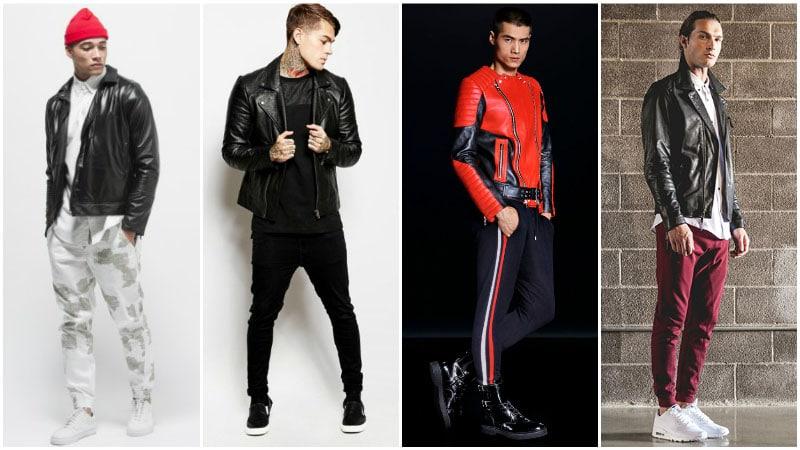 Una combinación que va ganando cada vez más adeptos es la de un pantalón de chándal con una cazadora motera. La combinación de unos pantalones deportivos suaves y cómodos con una chaqueta de cuero resistente te dará un aspecto más atlético y contemporáneo.