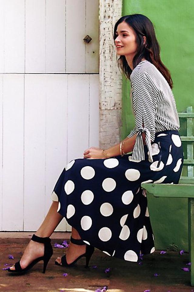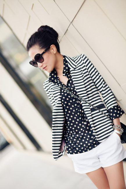 Conseguir mezclar estampados no es nada difícil, en este caso aposté por los lunares, tendencia que arrasa esta primavera y las rayas horizontales. Claro esta que quise que los protagonistas del look sean estos dos estampados de ahí que los combinara con colores básicos y neutros.