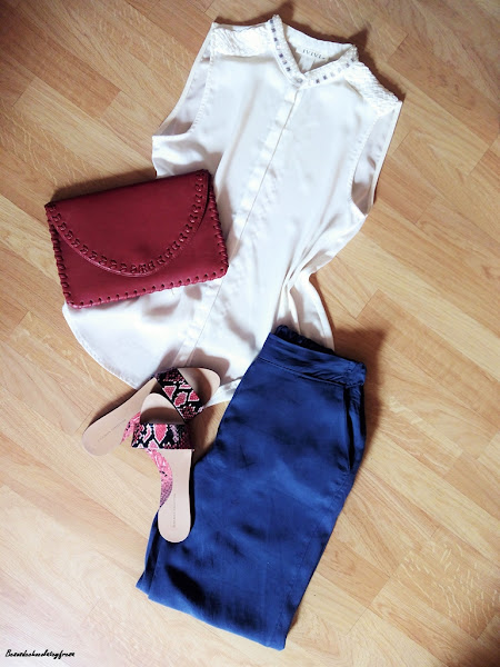 With blouse white, perfect for our more formal looks, and completing the look with accessories in red as the bag and shoes.