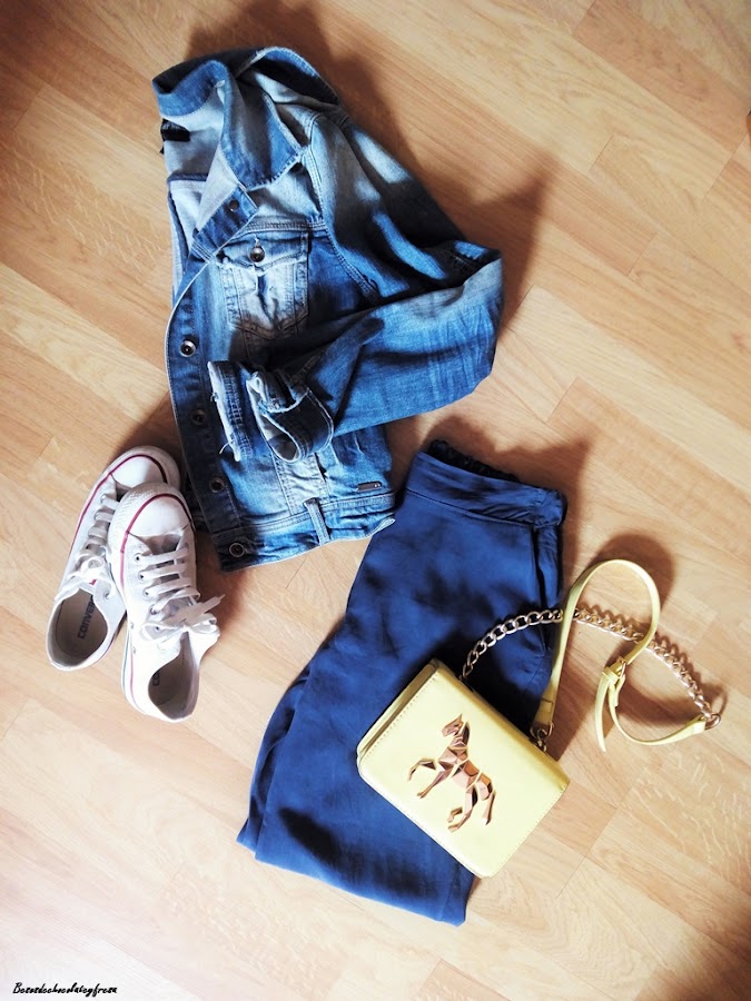 Con chaqueta denim, esa prenda versátil que combina a la perfección en todos nuestros estilismos y que podemos completar con un toque amarillo en los complementos.